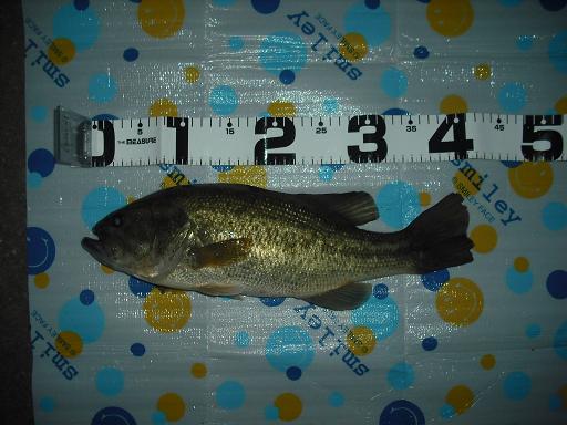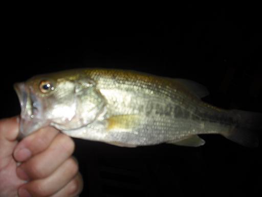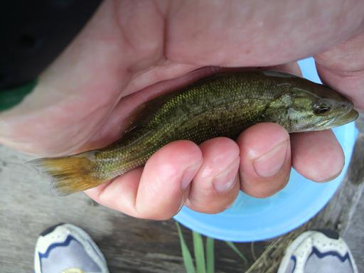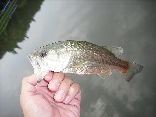 まったりと遊んでいる途中で、ギルにまじって子バスが釣れた。